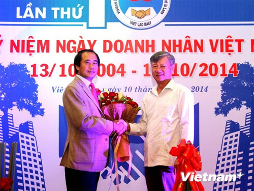 在老挝投资越南企业协会于10月10日晚在老挝万象举行越南企业家日成立10周年(2004.10.13/2014.10.13)纪念仪式。越南驻老挝大使阮孟雄、旅居老挝越南人总会代会长阮维忠等一同出席仪式。