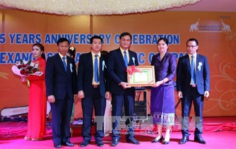 由越南邮政股份总公司(PTI)与老挝发展银行(LDB)合资的Lanexang大众保险公司成立5周年纪念仪式近日在老挝首都万象隆重举行。
