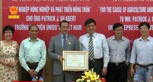 6月22日,越南农业与农村发展部副部长陈青南在河内向联合国工业发展组织(UNIDO)驻越代表处首席代表帕特里克·吉拉伯特(Patrick J.Gilabert)授予“为了农业与农村发展事业”纪念章。