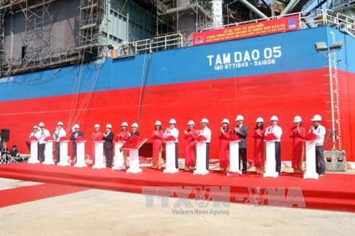 越南石油钻井制造股份公司(PVShipyard)为越俄石油联营公司(Vietsovpetro)制造的“三岛5号”自升式钻井平台交付仪式日前在巴地头顿省头顿市举行。
