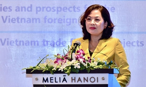 越南国家银行副行长阮氏红在论坛上发表讲话(图片来源:越通社) |