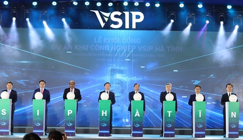 人民军队:6月25日,河静省人民委员会同越南-新加坡工业区与城市发展股份公司(VSIP JSC)联合举行河静越新工业园区项目开工仪式。越南政府副总理陈红河出席开工仪式。