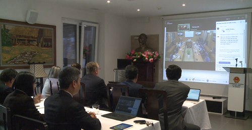 在研讨会上,越南常驻日内瓦代表团副团长、公使衔参赞范光辉主持了讨论会,为越南各部委和行业代表提出的法律问题提供解答。