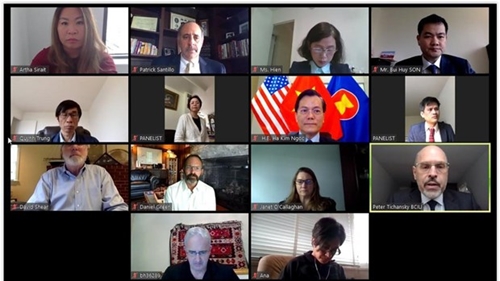 4月14日,越南驻美国大使何金玉已在华盛顿与美国国际谅解商务委员会(BCIU)总裁彼得·提察恩斯基(Peter Tichansky)和美国40大企业高级代表举行在线座谈。