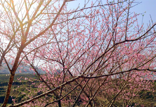 阳历1月中旬是梅樱桃花最美的时候。枯燥的树身一下子盛开着美丽诱人的花朵。大叻全突然被沉浸在梅花中,美丽如画的梅樱桃花花蕾使大叻城变成一片粉红色,美丽极了!梅樱桃花虽然很美,但季节却很短,鲜花正盛的时节大概在一个月内,一个月后慢慢就谢落了,花谢也是树身露出嫩芽的时候以及结下小小的果实了。梅樱桃果实成熟时紫色,味酸酸且有点苦,年轻人非常爱吃。