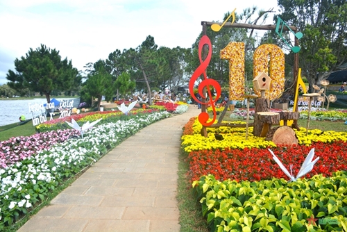 在2024年第十届大叻花卉节上,花卉空间被布置在春香湖畔和一些重要的街道如黎大行街和陈国瓒街等。数百种花卉和盆景植物被布置成各美丽的小景,让大叻的街坊变得从未如此的精彩纷呈。