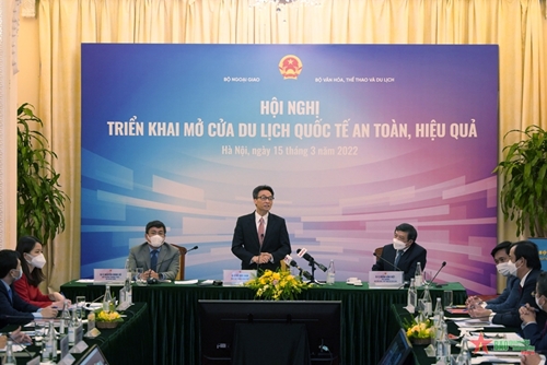在会议上发表讲话时,武德儋副总理强调:从3月15日起,越南重新开放国际旅游活动,但仍然要坚守防疫规则。重新开放国际旅游活动,也意味着我们敞开国门,为交易和旅游活动创造便利条件。