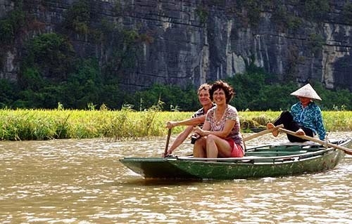 《人民军队》报谨向读者推出三谷碧洞稻谷成熟季节的组图: 宁平省华闾县宁海乡的三谷碧洞是最具吸引力的旅游景点之一。其被列入特殊国家级遗迹区 三谷的含义为大洞、二洞及三洞等三个洞穴。其中大洞是横跨梧桐江两座大山的最大、最美的洞穴 参观三谷碧洞胜地时,游客可以坐船在梧桐江赏景 在江河上谋生 这里山清水秀使游客大饱眼福 船只成为当地农民务农的唯一工具
