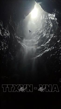考察队在公园区域内新发现了一个洞穴(图片来源:越通社) |