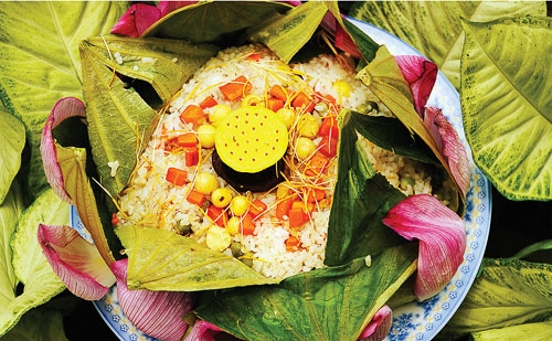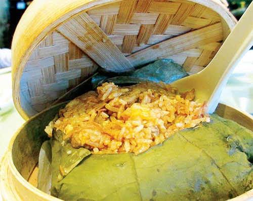 | 让食客着迷的莲叶饭(图片来源:人民军队报) |