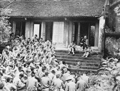 胡志明主席于1954年9月19日上午在雄王祠与先锋大团官兵交谈(图片来源:资料图片) |
