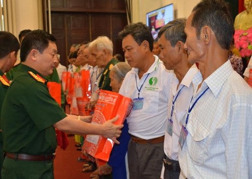 | 政策局领导人向后江省革命功臣代表赠送礼物(图片来源:人民军队报) |