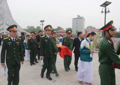 人民军队记者黄龙报道:2月3日上午,宜安省省委、人民议会、人委会,祖国阵线、武装力量在都良县烈士陵园隆重举行了在老挝牺牲的越南专家和志愿军48具烈士遗骸安葬仪式。