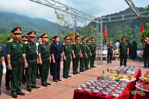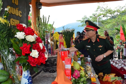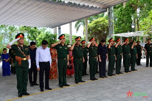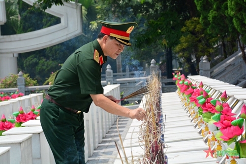 在庄严肃穆的氛围中,工作团向英烈敬香,表达对英烈的感激之情,愿忠于党、祖国和人民,建设政治过硬的本领,随时参加战斗,愿学习和践行胡志明主席思想、道德、作风,为建国卫国事业奉献才智,致力于建设一支革命化、正规化、精锐化、逐步现代化的军队。