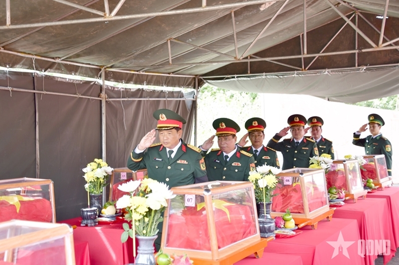 经过一个多月的努力,在第九军区政治局K90队与当地党委、政府和人民的配合下,在梁和乡境内发现并归宿了31具烈士遗骸。这些是参加抗法和抗美斗争的烈士遗骸,目前尚未确定遗骸的身份信息。