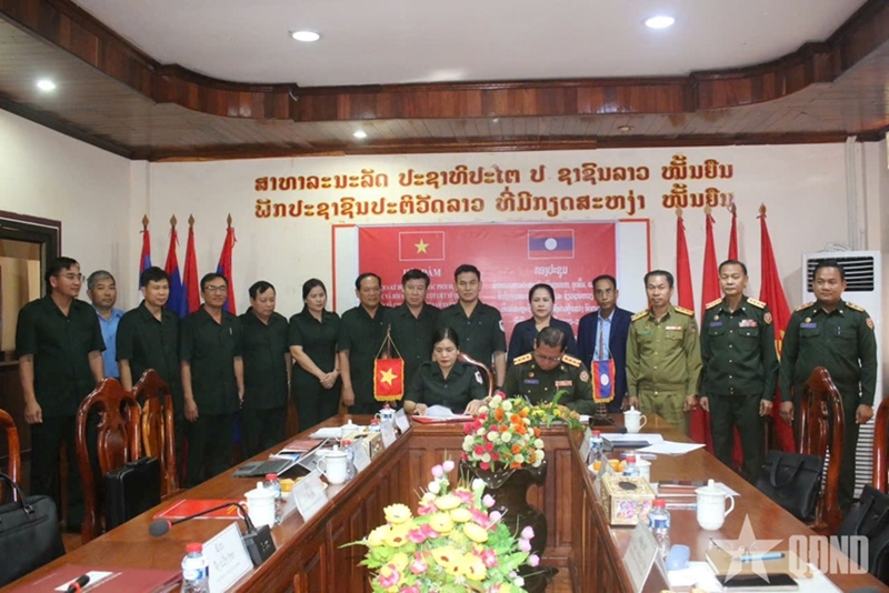 广义省领导与阿速坡省军事指挥部领导签署2025-2026年旱季烈士遗骸搜寻迁葬合作备忘录(图片来源:人民军队报) |