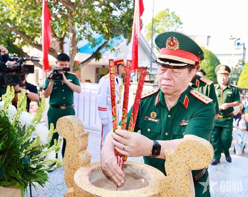 阮仲义大将敬香缅怀各位英烈(图片来源:人民军队报) |