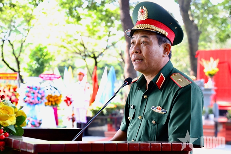 胡志明市司令部司令武文田少将在仪式上致辞(图片来源:人民军队报)