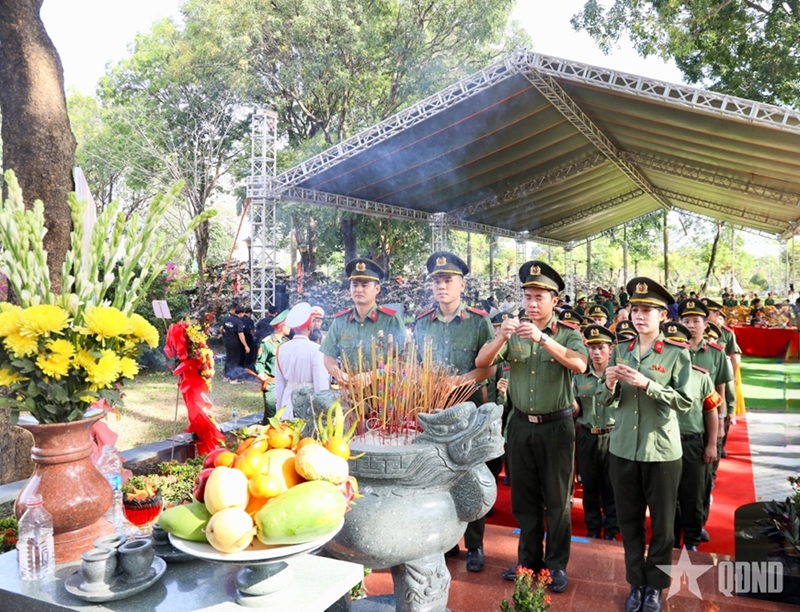 胡志明市武装力量代表上香缅怀各位烈士(图片来源:人民军队报)