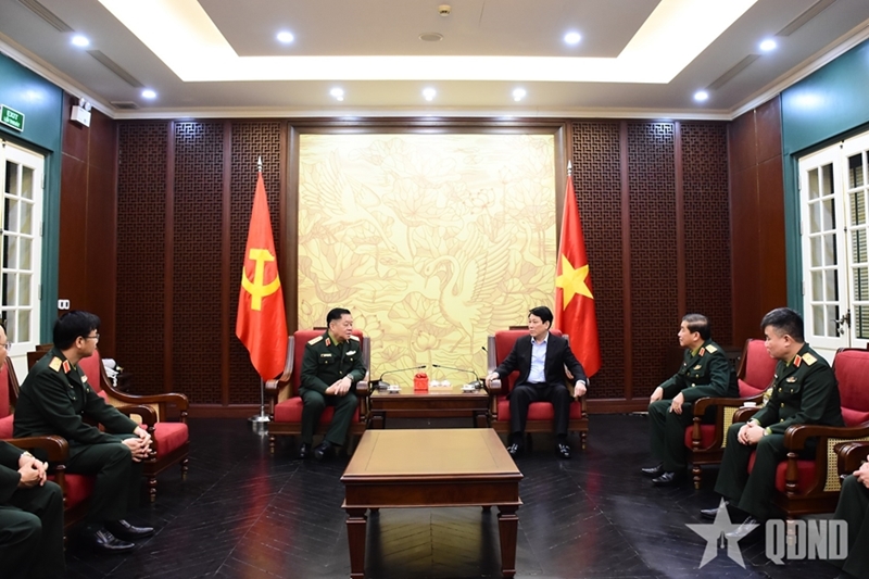 在亲切友好的气氛中,阮仲义大将向国家主席梁强汇报了近期军队建设、巩固国防、保卫祖国等任务都取得的突出成绩,强调越南人民军始终绝对忠诚于党、祖国和人民,随时准备接受并圆满完成一切任务。