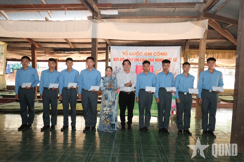 西宁省军事指挥部副政委、西宁省515指导委员会副主任阮明晋大校向拜林省军事小区赠送贺年纪念品(图片来源:人民军队报) |