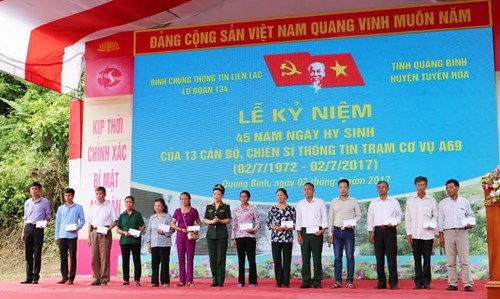总政治局宣训局、通信联络司令部领导代表;广平省领导;当地若干部门、行业及单位的领导代表以及13位烈士家属一同出席。