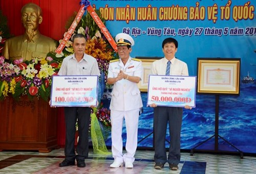 在典礼上,129海团向巴地头顿省为贫困人基金会募捐一亿越盾;为头顿市为贫困人基金会募捐五千万越盾。此外,129海团荣获党、国家授予的一级捍卫祖国勋章,政府总理向129海团和海团团长阮俊英大校授予荣誉证书。(完)