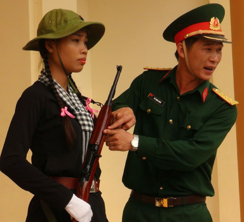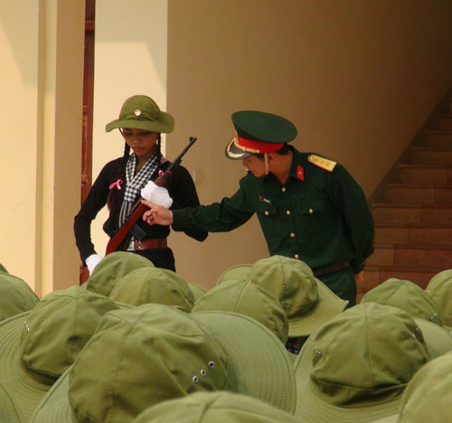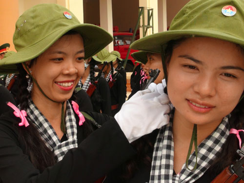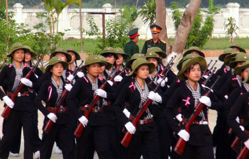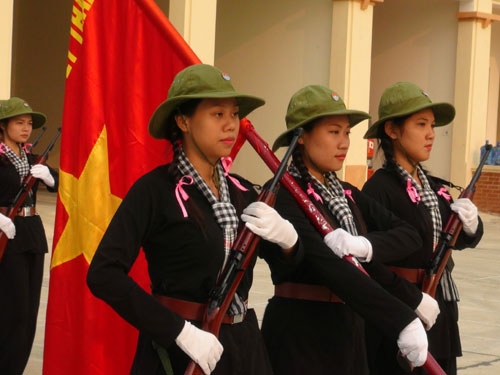 名女民兵还认真进行队列条令训练,为即将来临的奠边府大捷