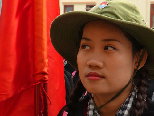 周年纪念典礼做充分准备。在训练场上穿着南部妇女特色的传统服装、戴着格子围巾和绿色帽子、头发扎着两个粉红色蝴蝶结的女民兵队伍最引人注目。