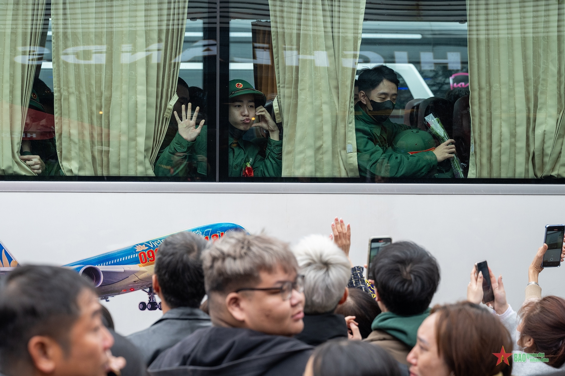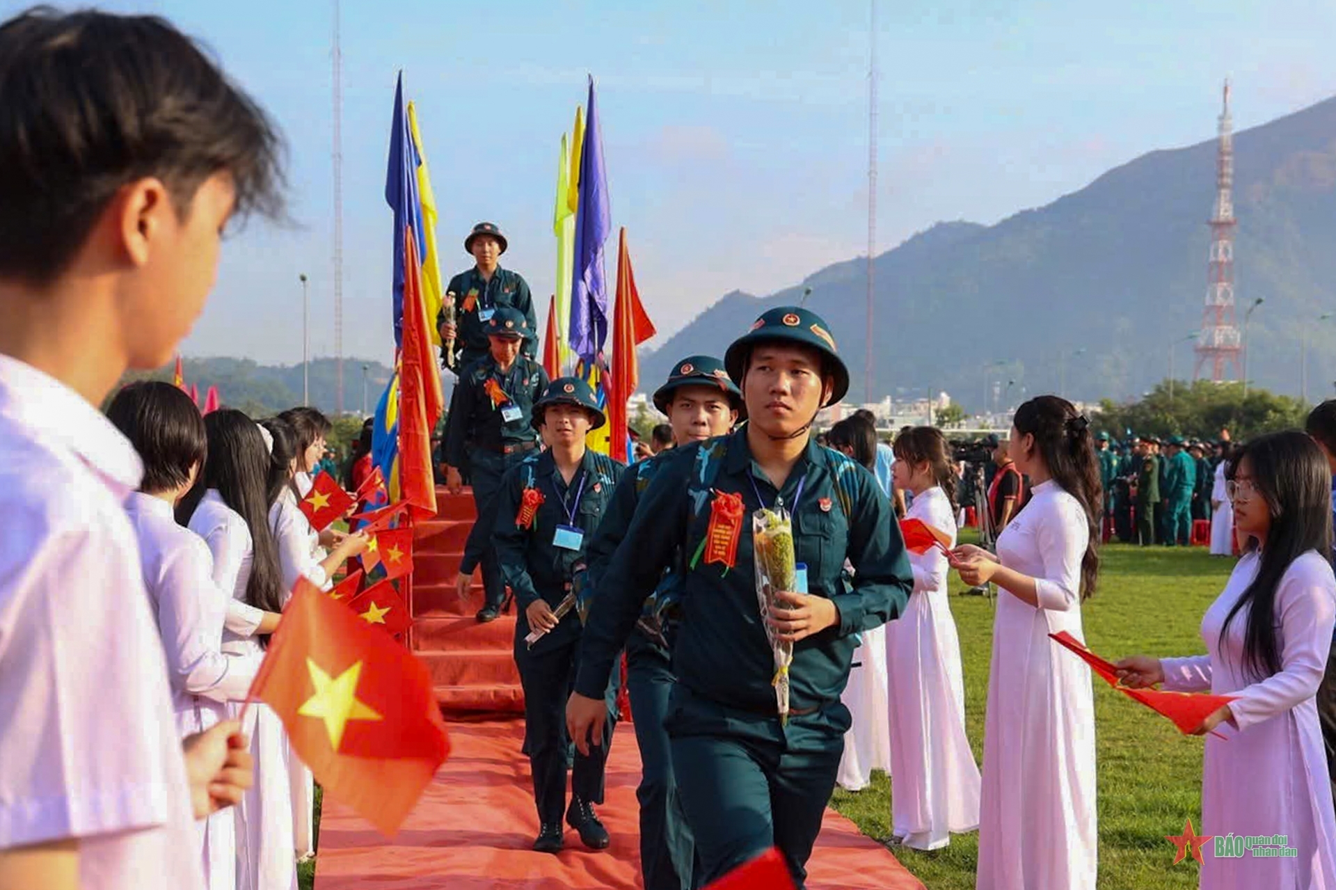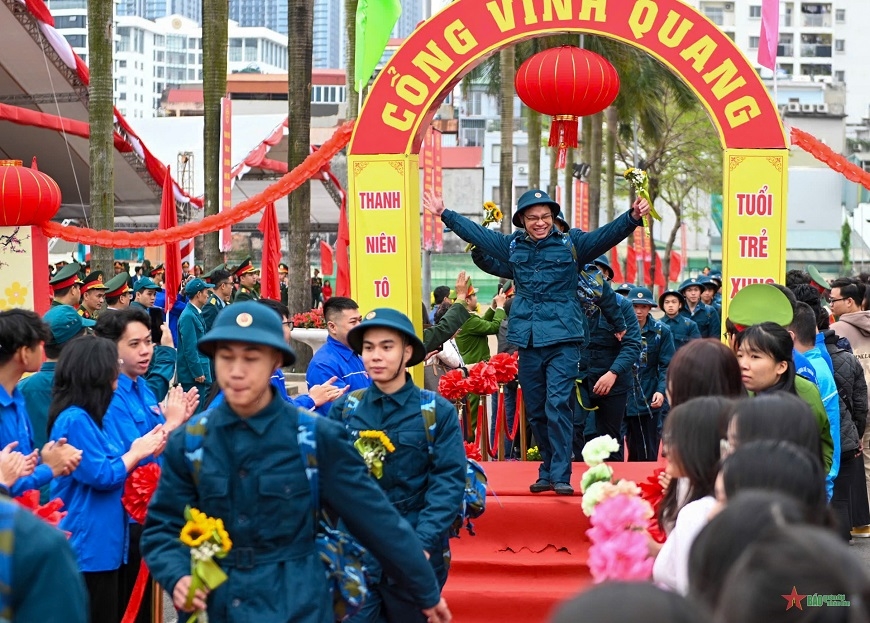在庄严而温暖的氛围中,家乡的优秀青年身着绿色军装,继承英雄越南人民军的光荣传统。这是一代被理想所锻造、满怀奉献渴望、并深刻意识到保卫祖国神圣使命的年轻人。紧握的双手、依依不舍的拥抱、家人和亲友自豪而深情的目光,构成了一幅幅动人的画面,也寄托着人们对当代青年的信任与期待。