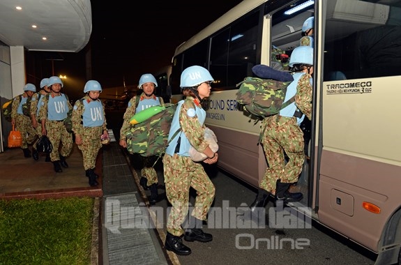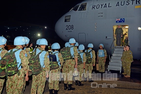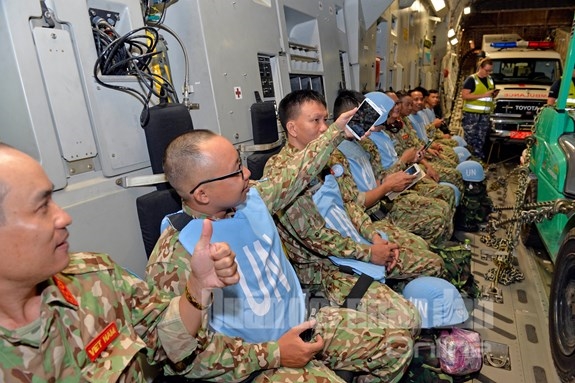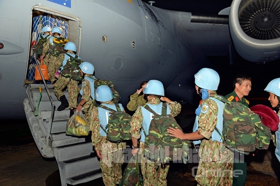 人民军队: 10月2日早晨3时5分钟,载运越南维和部队的澳大利亚皇家空军C-17号运输飞机已升空飞往南苏丹。 起飞之前,越南一号二级野战医院官兵们已充满自信地做好各项准备工作、办理好出境手续、与亲人告别。在他们走上履行崇高的和平使命之路的历史性时刻,人民军队报记者已及时拍照留下了他们值得自豪的神圣时刻之组图: