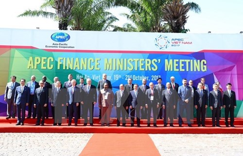 政府总理阮春福与亚太经合组织经济体领导在2017年APEC财政部长会议上合影(图片来源:越通社)