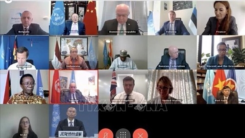附图:联合国安理会8月25日召开的一个视频会议(图片来源:越通社) |